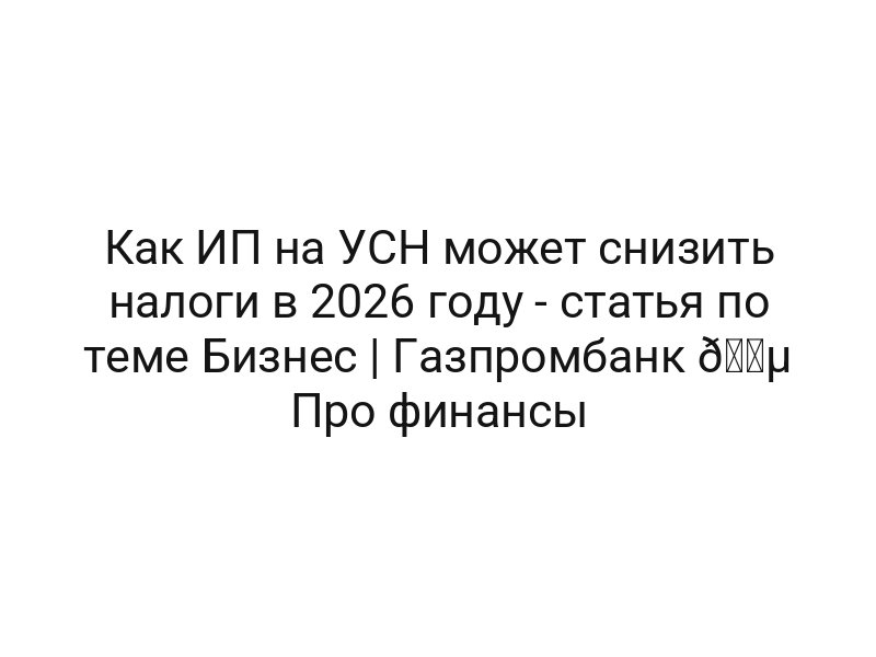 Как ИП на УСН может снизить налоги в 2026 году